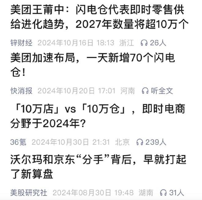 这么看问题也不大,京东虽然单量少但是增长快啊。但是,去年十月,美团宣布到2027年要开出十万个闪电仓;而京东则在年底结束了与山姆的合作。