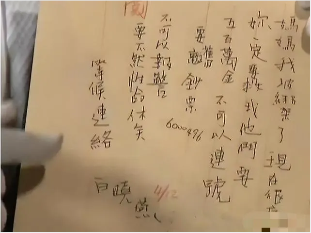 妈妈,我被绑架了,现在很痛苦,你一定要救我,他们要五百万美金,不可以连号,要旧钞票。不可以报警,要不然性命休矣。