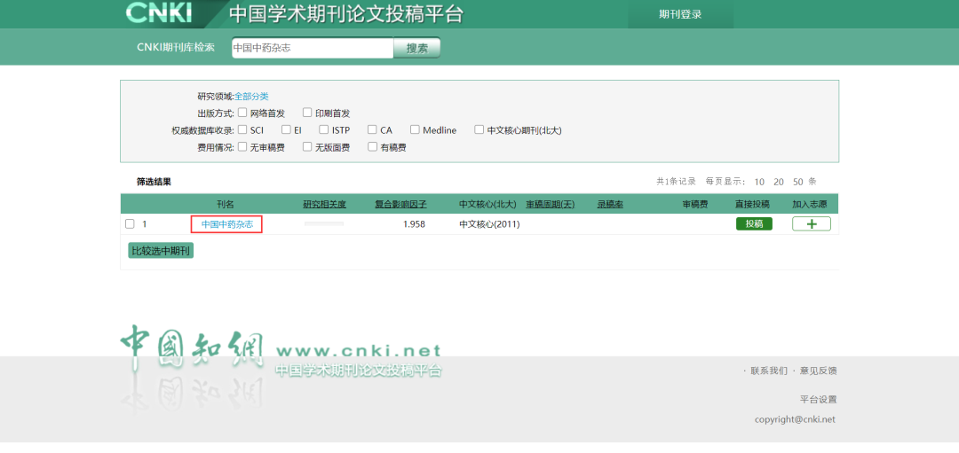 以《中国中药杂志》为例,点击【中国中药杂志】。