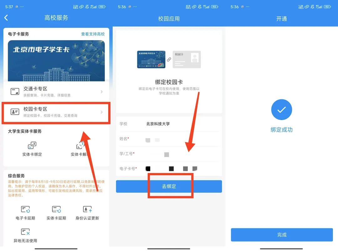 请务必再次点击进入“高校服务”,进入“校园卡专区”,点击“立即绑定”,确认个人信息无误后点击“去绑定”。绑定成功后方可使用手机NFC电子校园卡。
