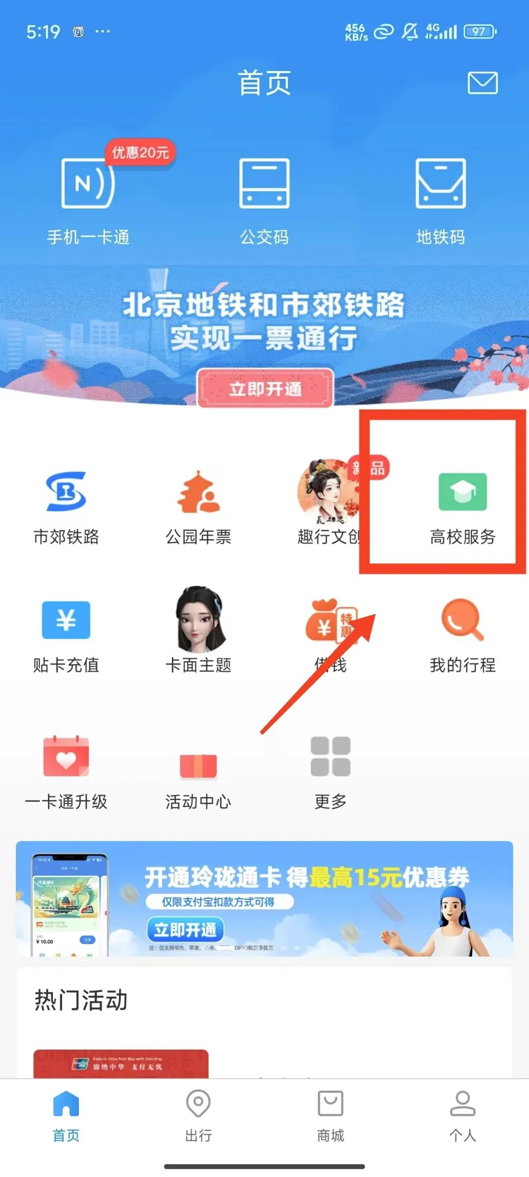 开卡成功后可在“手机一卡通”中查找,并且将卡片添加到手机“钱包”APP中设置为默认卡(苹果设置为快捷交通卡),方便刷手机直接调用;