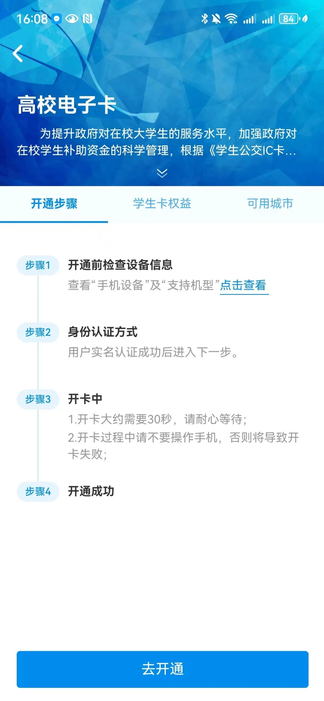 电子交通卡开通后请务必绑定电子校园卡,如不绑定校园卡则无常使用NFC电子校园卡消费;