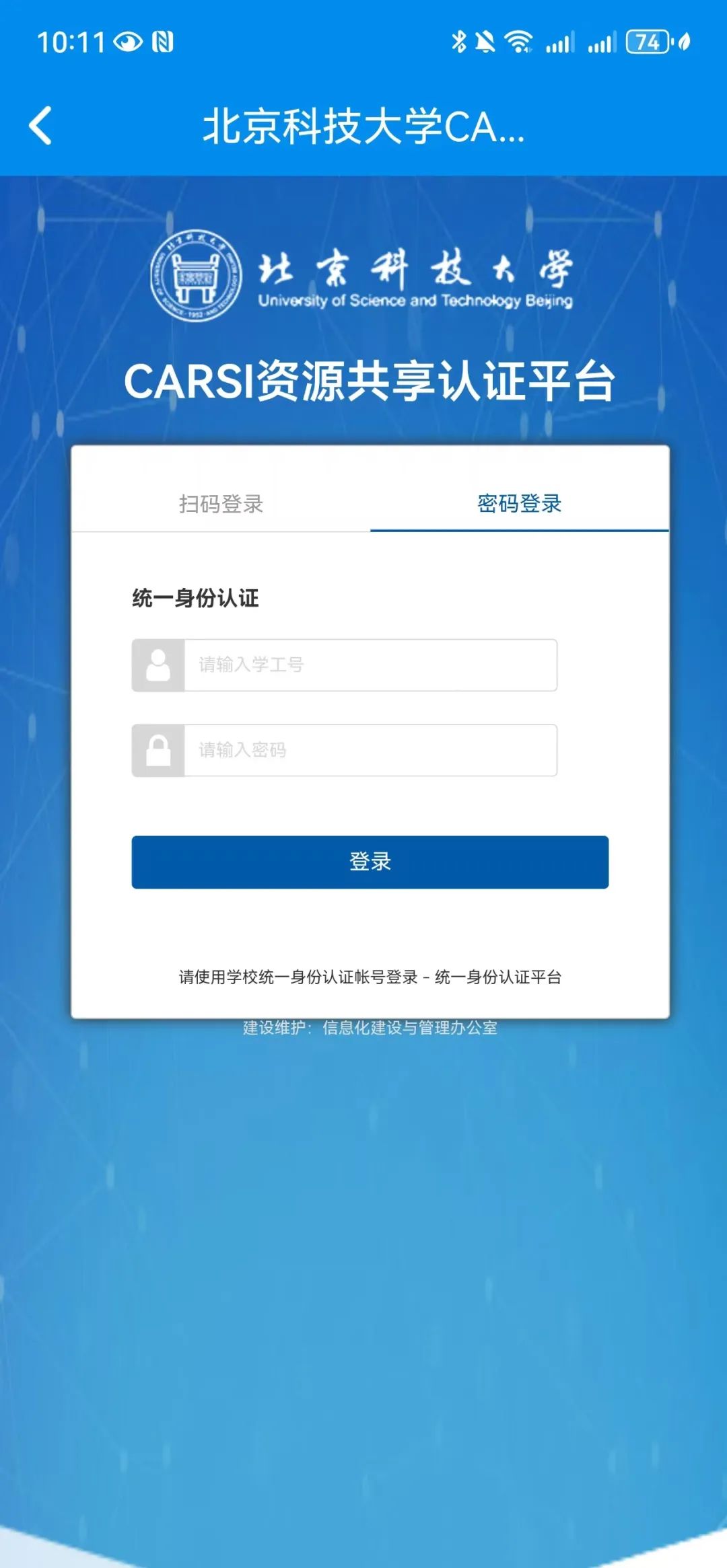 在认证界面,点击“密码登录”,输入我校统一身份认证账号密码,通过认证后,按照要求提交个人信息后点击“下一步”进行开通;