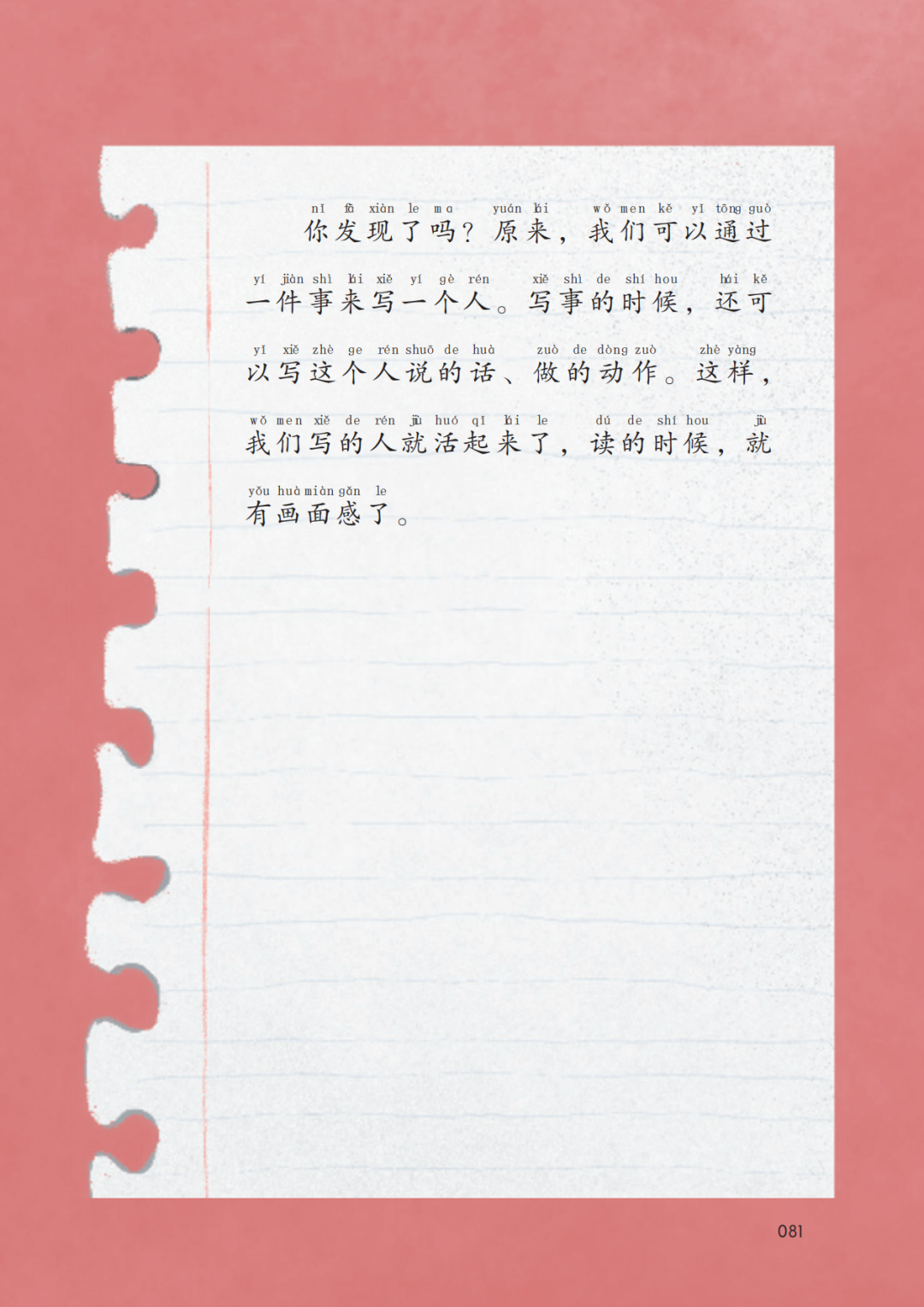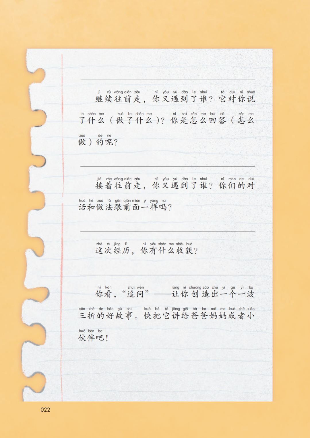接着,通过每篇文章之后设置的“阅读交流话题”,巧妙地引领孩子们在阅读中汲取丰富的写作养料。这些话题,一方面,帮助孩子更好地理解、把握文本;另一方面,会从文本拓展开,联结生活,引导孩子更加开放地去思考、思辨。通过思考与交流,逐步拓宽思维和视野,学习如何运用语言来表达情感,进而勇敢迈向表达与创作的广阔天地。