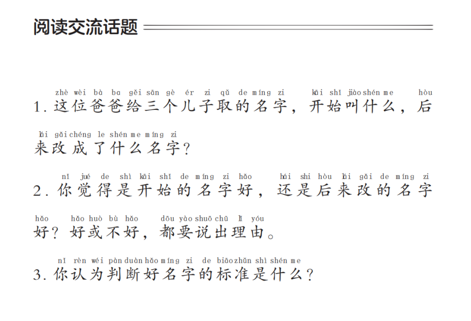 比如,这篇文章之后的阅读交流话题,前两个话题,紧扣文本,帮助孩子更好地理解文章内容,第三个问题则是联结到孩子的生活,让孩子有更广阔的思考。