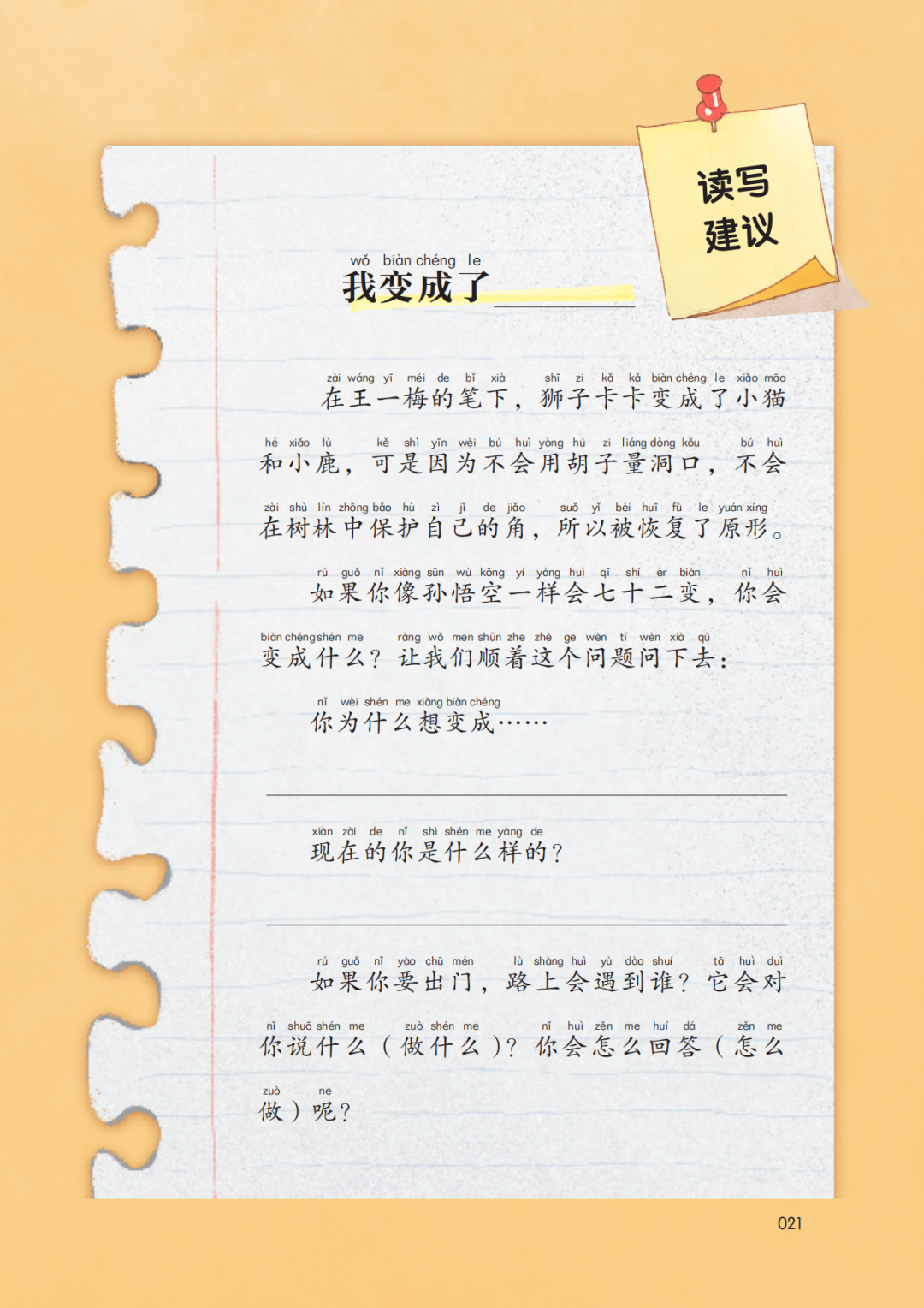 二年级的孩子总有很多奇思妙想,要怎么把“我变成了___”这样一个小故事写得有趣生动且情节完整,让人有读下去的兴趣呢!来看看读写建议吧!