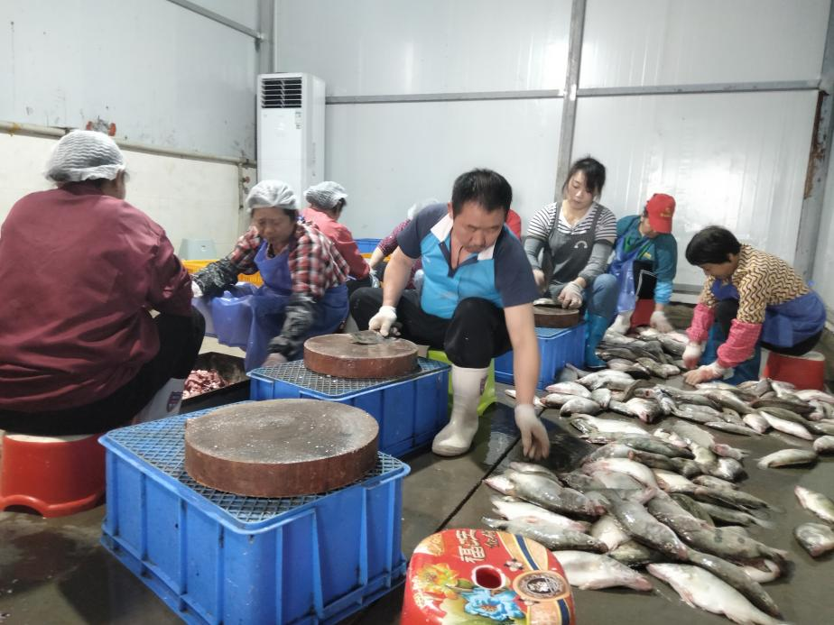 记者在湖北良之尚生态农业有限公司臭鳜鱼生产加工车间看到,工人们分工协作,紧密配合,有的在宰杀鳜鱼、有的在清理鱼的内脏,有的将包装好的鳜鱼送到冻库内进行速冻,一派繁忙景象。