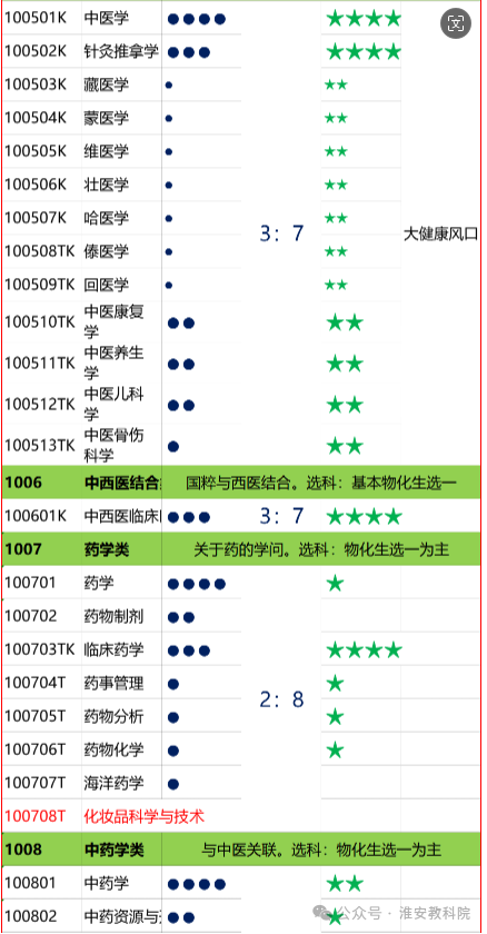 4:6生物工程类、口腔医学类、中药学类。