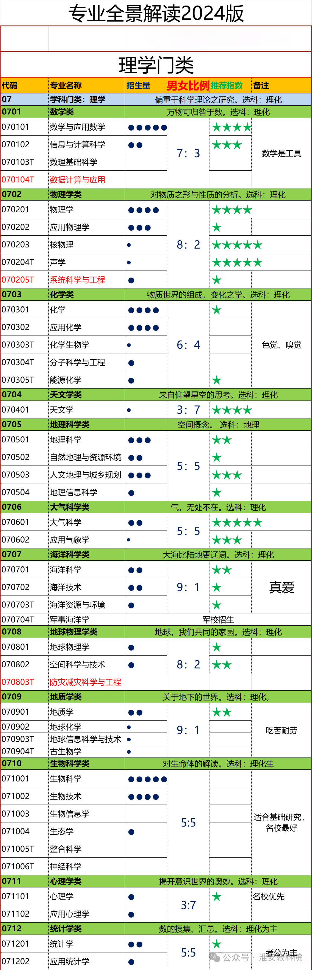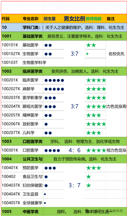 依据为权威统计之各专业(类)男女性别比。