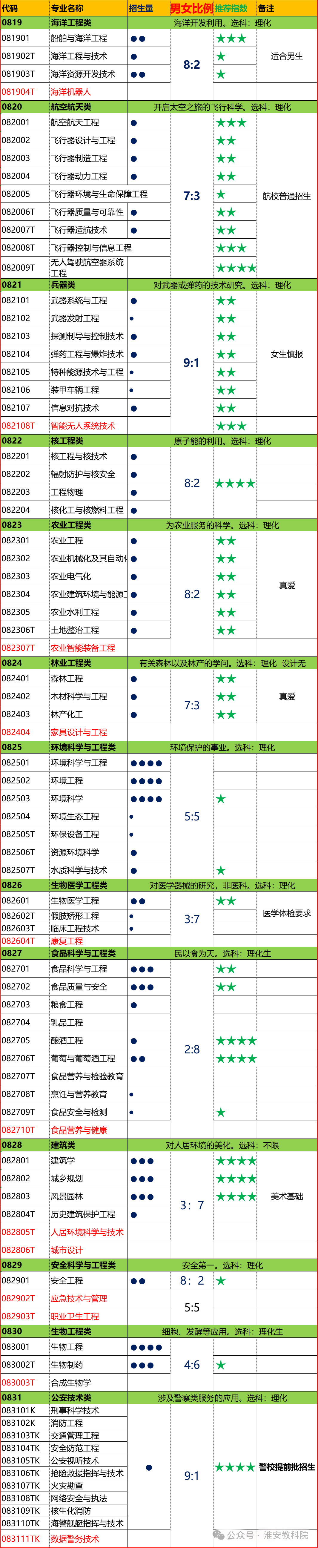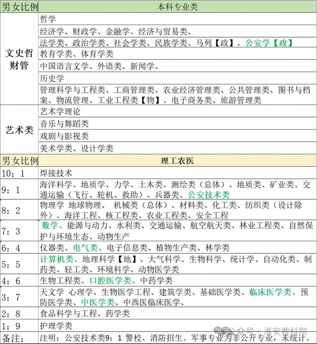 注明:公安技术类男女比例9:1 警校、消防招生。军事专业为非公开专业,未统计。