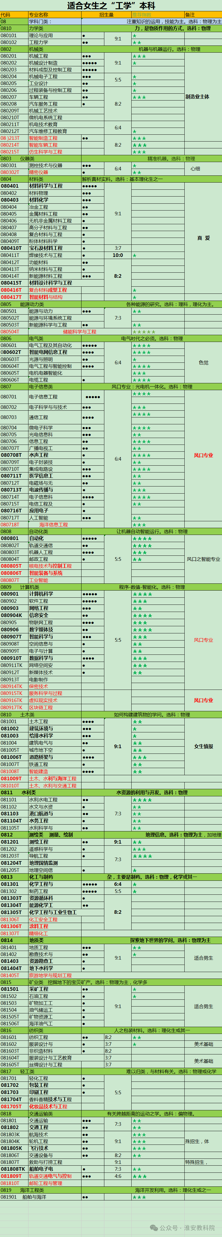 对理科女生而言,尤其是物化选科女生,选择”理工农医“专业,是一种务实的选择,需要注意女生适合性。