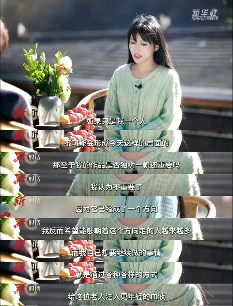 她不会在意是否独树一帜,而是希望朝着这个方向走的人越来越多,而她自己,则想要继续通过各种方式给传统文化注入更年轻的血液。
