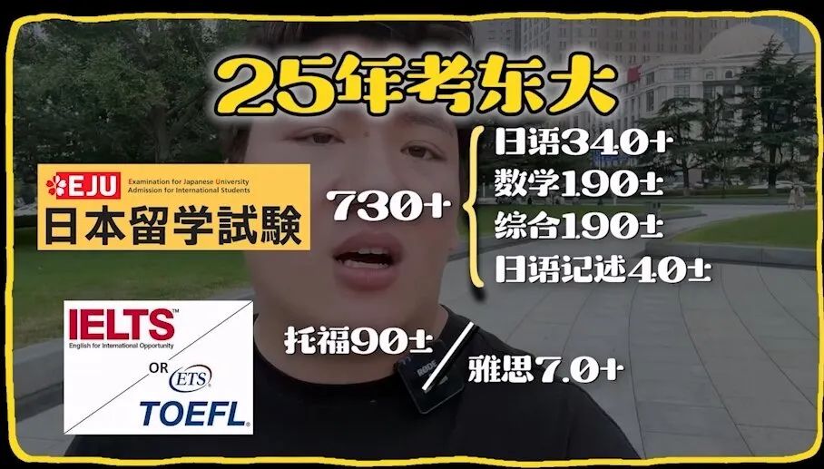 对标到高考,至少要是总分500~600这个分数段的学生,提前3年以上准备日语和英语托福,再考虑考东大,才有底。