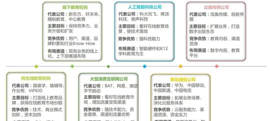 各大企业纷纷布局,BAT、今日头条等消费互联网公司看好在线教育行业,依托 流量和资金优势进入市场。