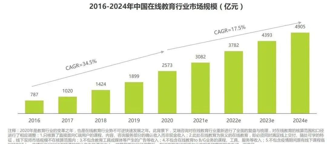 不管是小朋友、家长还是老师在2020年新冠疫情的肆虐下,有一半时间都是在家进行线上学习、培训和教育的。21世纪以及未来5-10出生的小朋友对互联网、智能手机等有与生俱来的的亲切感,而且随着家长教育理念转变和教育消费升级,线上教育势不可挡。当代的年轻人高等教育、语言培训、职业教育等也从线下逐渐发展到线上。2016-2019年,教育行业整体线上化率由8%-10% 提升至13%-15%,2020年疫情外生冲击下,在 线教育行业市场规模同比增长35.5%至2573亿元,整体线上化率23-25%。其中低幼及素质教育赛 道、K12学科培训赛道在线化进程加快是在线教育市场快速增长的最主要贡献因素。