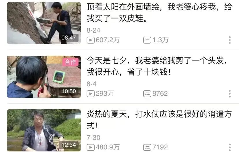 粉丝1100余万的@念乡人周周,因为拍摄乡村四季美食爆火;粉丝达930万的@彭传明,因制造各种中国传统物件闻名……