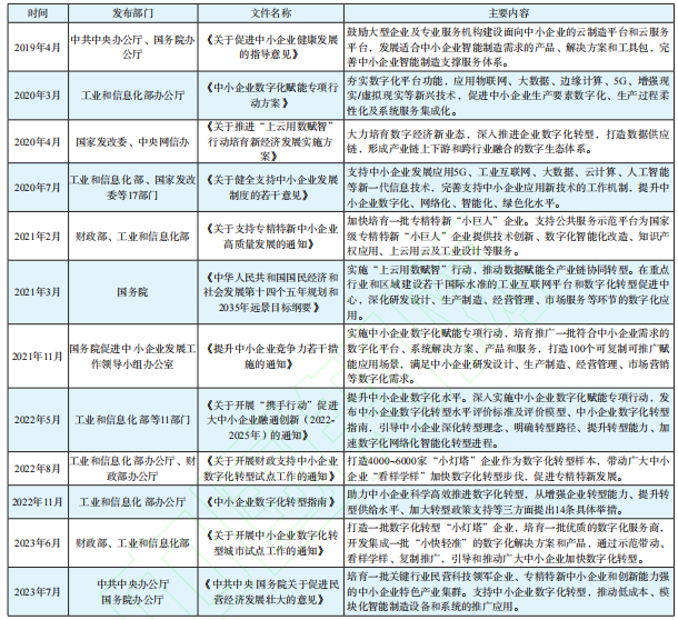 表1 党和政府支持中小企业数字化转型的相关政策表
