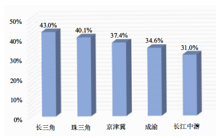 有数据显示,长三角、珠三角和京津冀三大城市群的中小企业数字化转型比例高于全国平均水平,其中,长三角城市群的中小企业数字化转型比例最高,珠三角次之,京津冀最低,所占比例分别为43.0%、40.1%、37.4%。成渝和长江中游城市群的中小企业数字化转型比例低于全国平均水平,所占比例分别为34.6%、31.0%。