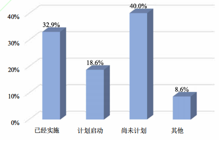 有数据显示,2020年,仅有不到1/3(32.9%)的中小企业实施了数字化转型战略,40.0%的中小企业现阶段未有任何数字化转型计划,还有18.6%的企业仅计划启动数字化转型(见图1);2021年的调查数据显示,有44.8%的中小企业实施了数字化转型战略,较2020年增长了11.9个百分点,仍未超过半数。