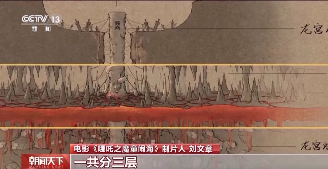 除了角色设计,不少观众好奇,海底龙宫有几层?每层都有什么用途?主创团队也进行了揭秘。