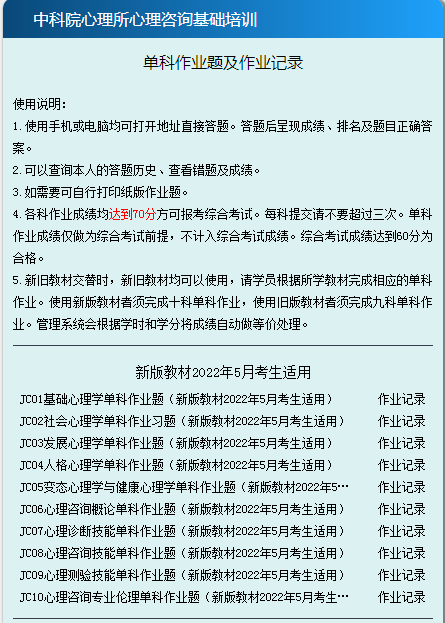每科单元测试可多次提交,最多不超过三次。考生如果第一次不通过,建议好好复习后再进行二次测试。单元测试不合格者,是无法拿到心理咨询师证书的。