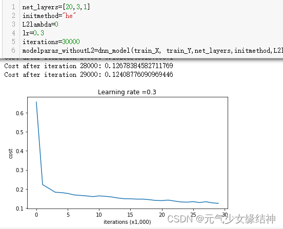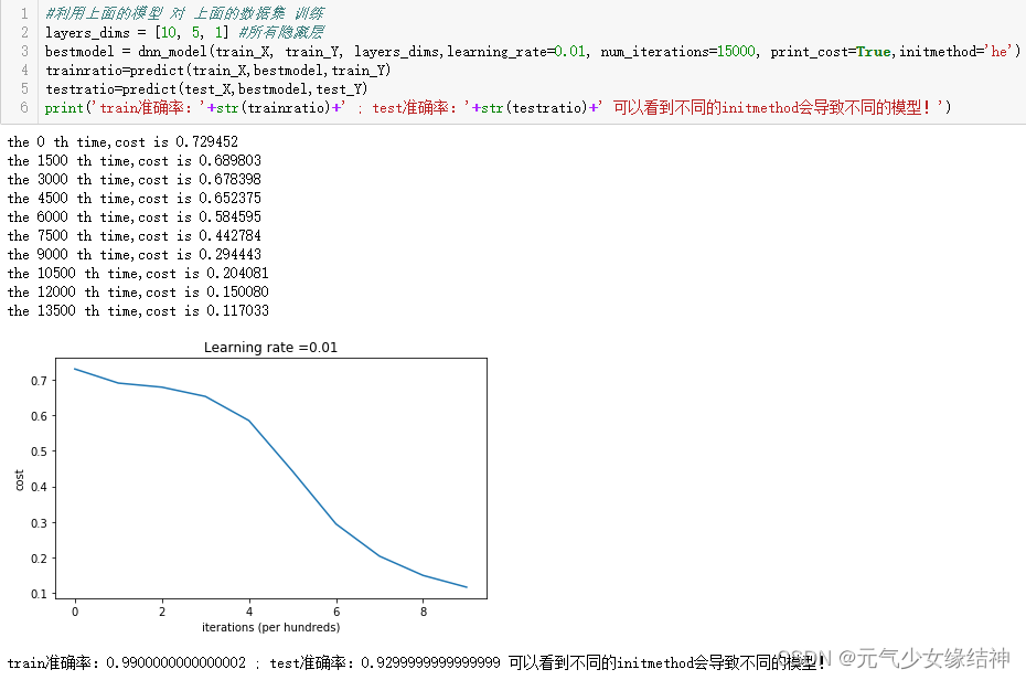 所以是这个导致了结果不同??那为什么其它几种初始化方式与老师的结果一样呢?肯定不是上面我改的函数的问题。哦我知道了,这里网络隐藏层变了不再是[10,5,1],所以结果才不同,纠正后终于正确了: