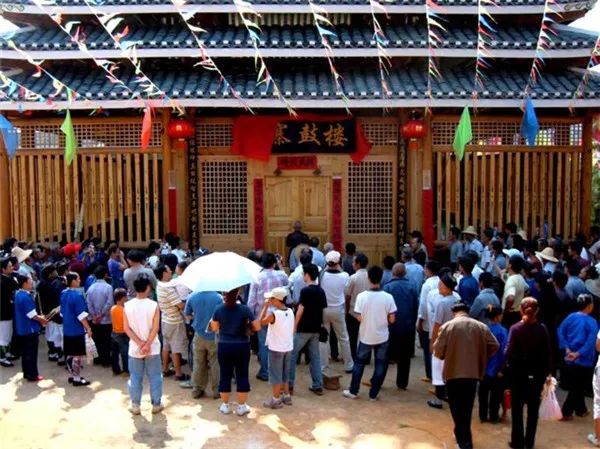 鼓楼建成后,当地村民请杨求诗吃饭